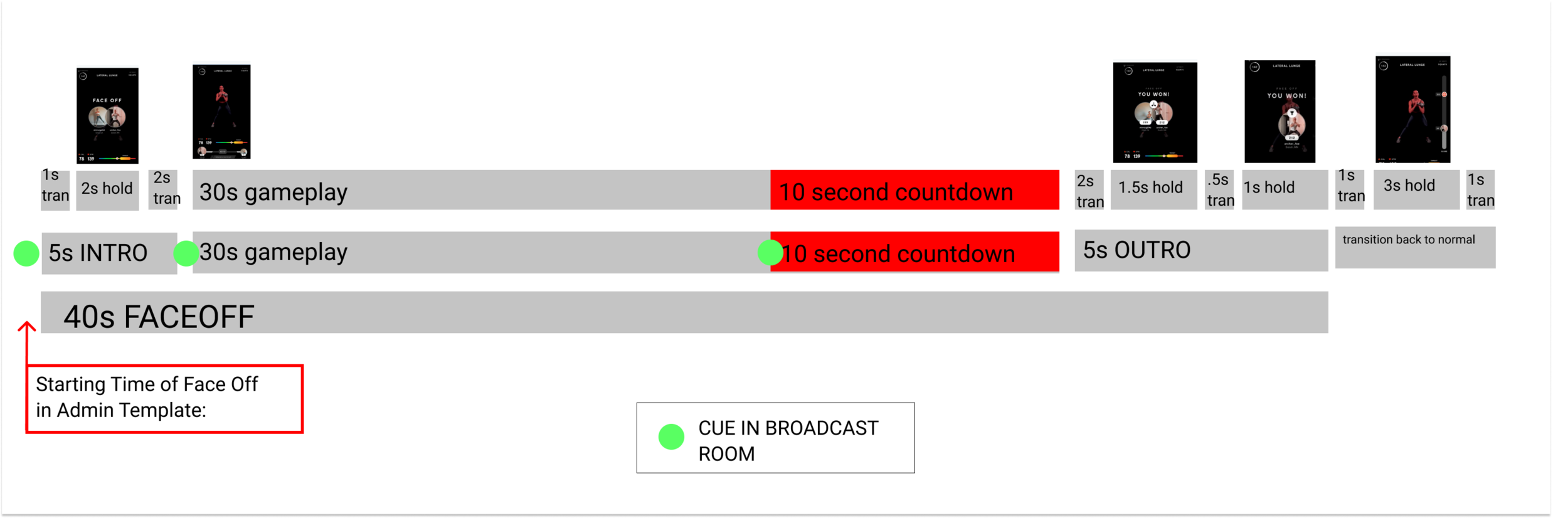 When the timer gets to zero, the Face Off is over. Both participants are displayed in a layout similar to the initial Face Off announcement, with updated text/iconography.